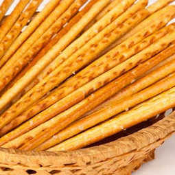 Наиболее распространенным мучным снеком является соломка, наиболее популярным видом которой является соленая соломка. Также, в последнее время, получили распространение хлебные палочки, которые чаще встречаются в продаже в сетевых магазинах.