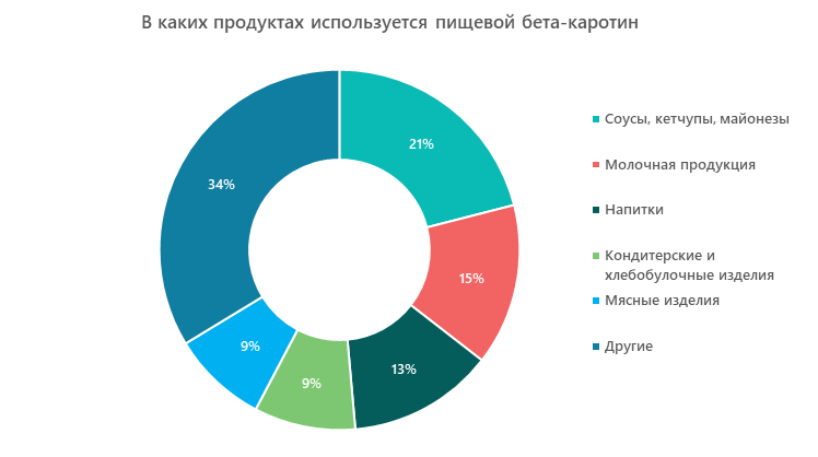- увеличение спроса на рынке пищевых красителей, к которым относится и бета-каротин. Люди, заботящиеся о своем здоровье, ищут визуально привлекательные продукты с минимальным количеством искусственных добавок, и, чтобы удовлетворить увеличивающийся спрос на них, производители используют в своих рецептурах витамины натурального происхождения;