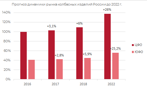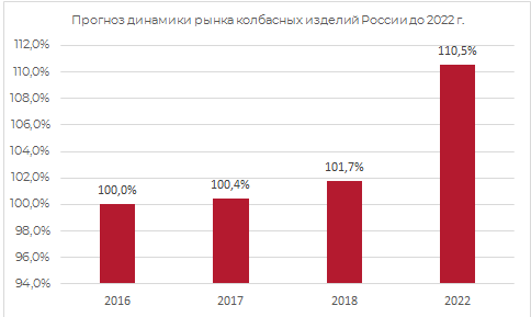 Прогноз развития рынка колбасных изделий в России на период до 2022 г.
