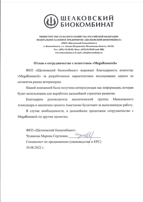 Надеемся на дальнейшее взаимовыгодное сотрудничество с агентством «MegaResearch».