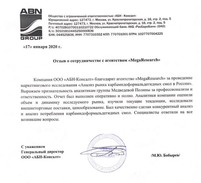 Мы будем в дальнейшем обращаться в агентство MegaResearch и рекомендовать Вас нашим партнерам по бизнесу.