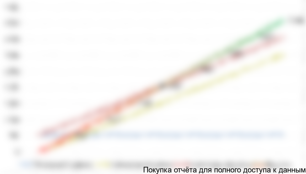 Рисунок 4. Оценочный объем розничного рынка строительных материалов (рынок DIY) в Краснодарском крае в 2014-2016 гг. 15