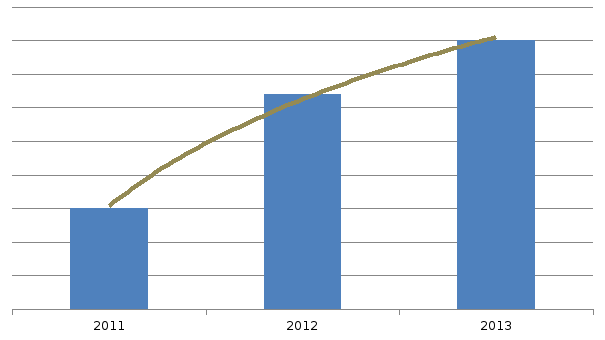 Рисунок 3.1 Динамика роста рынка керамзита за 2011-2013 годы, тыс. куб. метров 15